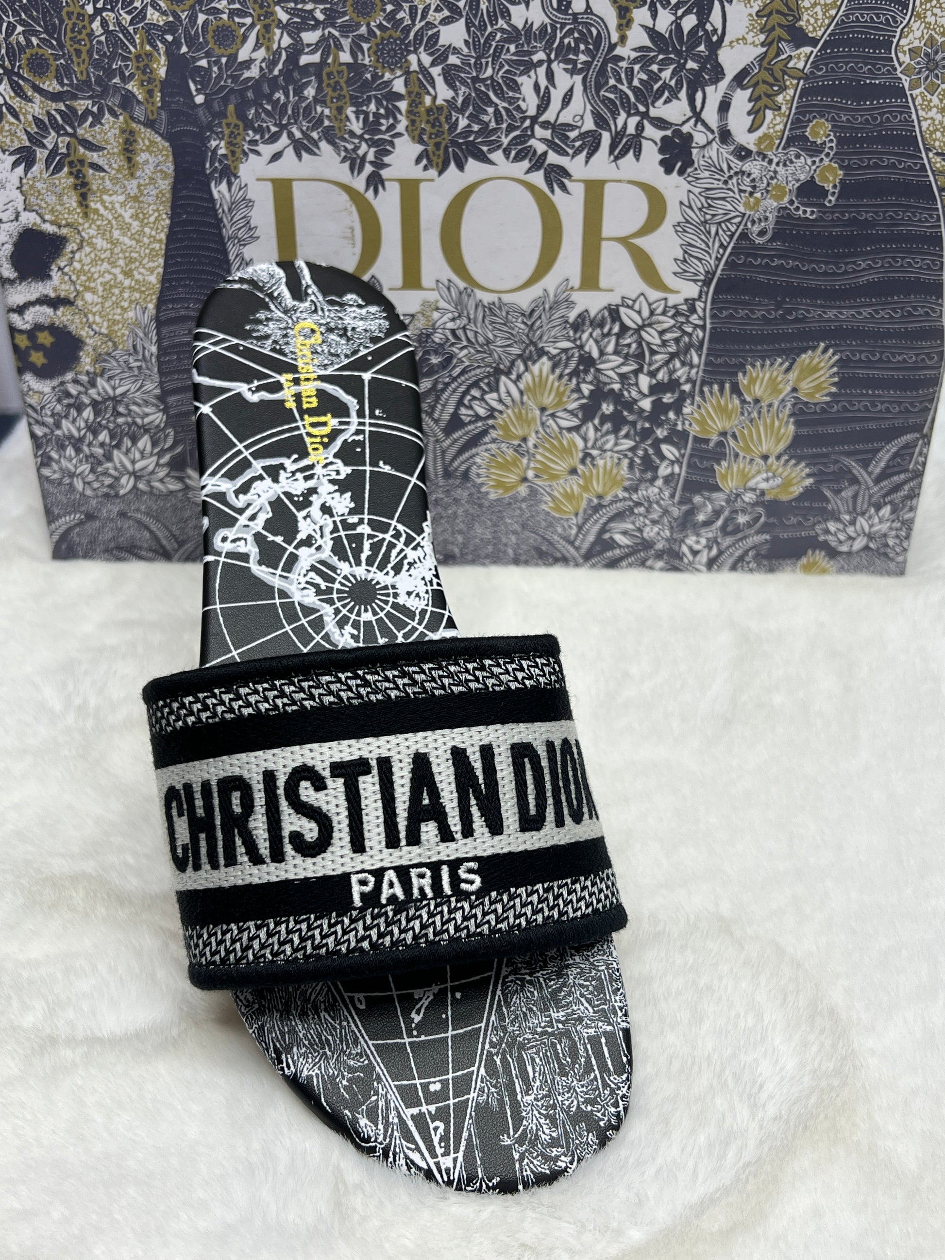 Premium Designer Style Ladies Slides – Floral Printed Strap Slippers (Inspired by Paris Fashion)